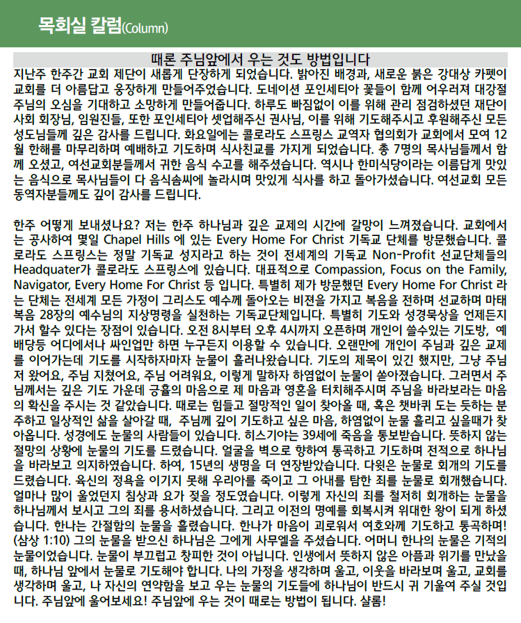 - 이전글성탄의 앞서 가시는 주님의 은혜! 22.12.25