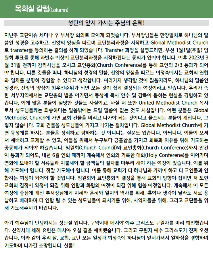 - 이전글함께 웃고, 함께 울며, 함께 전진하는 교회 23.01.04