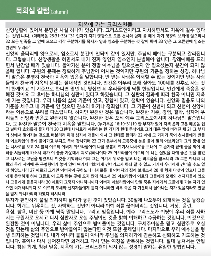 지옥에 가는 크리스천들 페이지 정보 작성자 한미연합감리교회 조회 1,003회 작성일 22-08-13 10:15 목록 본문 지옥에 가는 크리스천들 이전글천국에 가는 크리스천 22.09.01 다음글한미연합감리교회 사역을 시작하면서 (성태식 전도사) 22.08.07 댓글 0 댓글목록 등록된 댓글이 없습니다. 목록