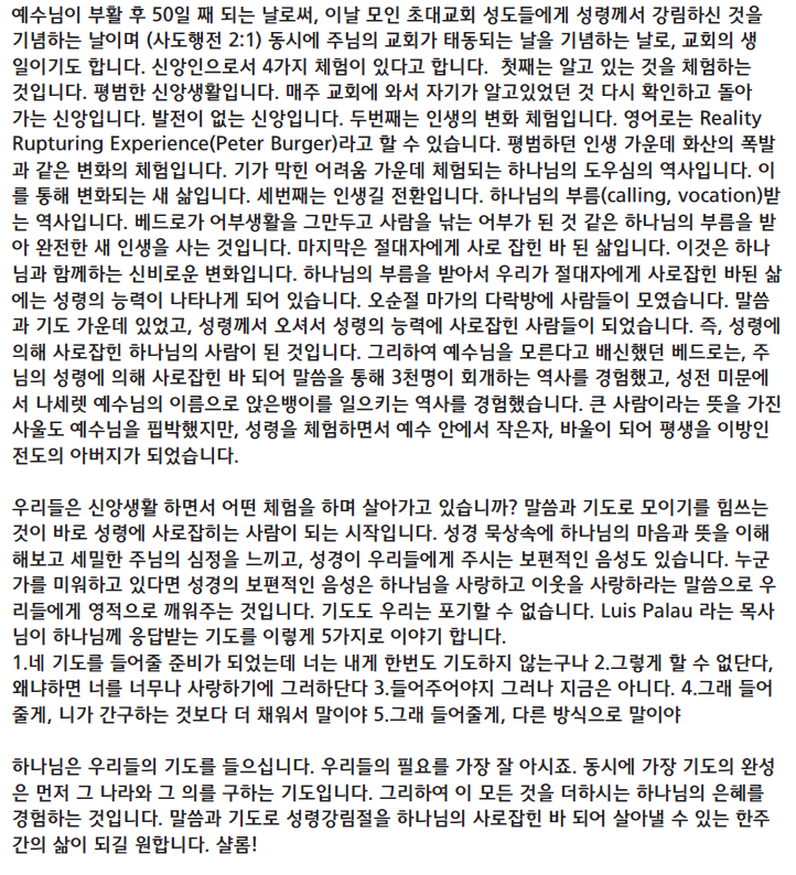 성령강림주일 페이지 정보 작성자 한미연합감리교회 조회 1,088회 작성일 22-06-04 06:14 목록 본문 성령강림주일 이전글Weekly Reflection 22.06.11 다음글Weekly Reflection 22.06.04 댓글 0 댓글목록 등록된 댓글이 없습니다. 목록