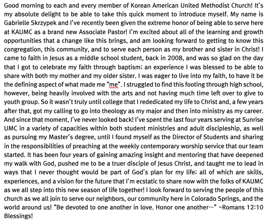 - 이전글Pastor Gabby Skrzypek 전도사님을 소개합니다! 22.05.14