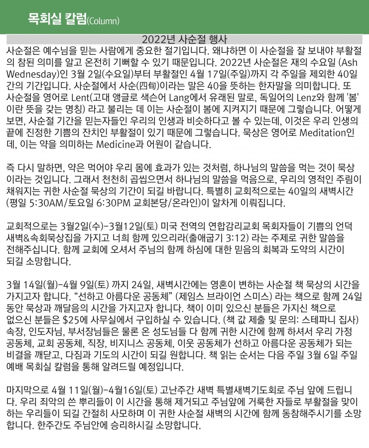 2022년 사순절 행사