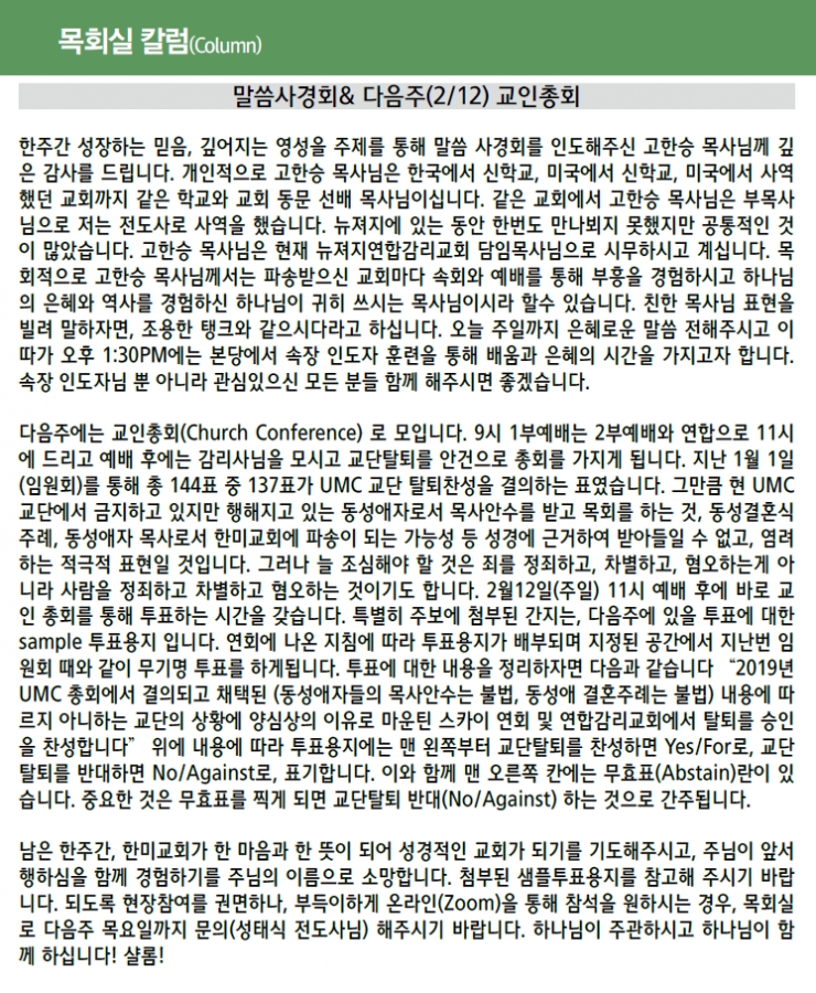 말씀사경회&다음 주(2/12) 교인총회