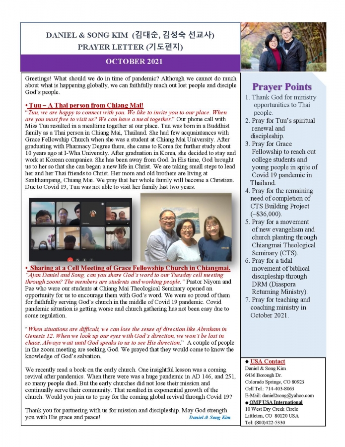 2021 태국에서 온 선교편지 10월 페이지 정보 작성자 한미연합감리교회 조회 1,361회 작성일 21-10-06 10:53 목록 본문 2021 태국에서 온 선교편지 10월 이전글2021 11월 태국에서 온 선교편지 21.11.19 다음글2021 태국에서 온 선교편지 9월 21.09.04 댓글 0 댓글목록 등록된 댓글이 없습니다. 목록
