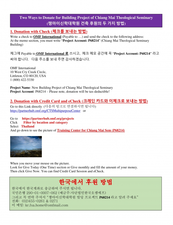 태국에서 온 선교편지 2021년 2월&3월 페이지 정보 작성자 한미연합감리교회 조회 1,256회 작성일 21-03-17 12:30 목록 본문 태국에서 온 선교편지 2021년 2월&3월 이전글2021 나바호에서 온 사역영상 21.03.26 다음글하와이 코나에서 온 선교편지 21.02.28 댓글 0 댓글목록 등록된 댓글이 없습니다. 목록