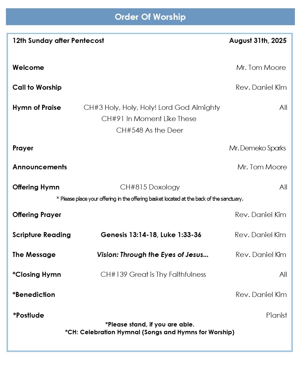 * During the Vision Trip, please direct any pastoral inquiries to Associate Pastor Daniel Kim