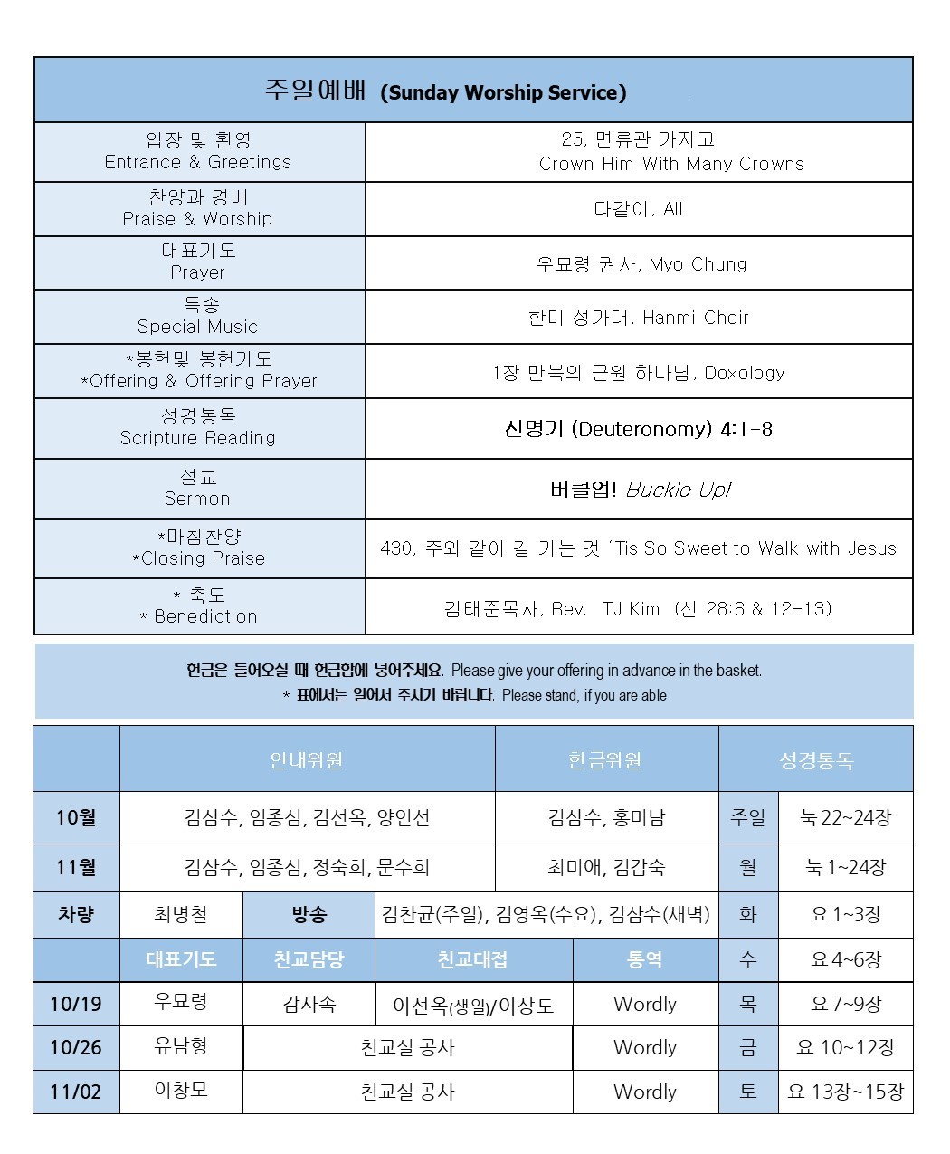 * 지난 주일에 있었던 새가족 환영회를 위해서 수고해 주신 새가족팀과 함께 해 주신 여러분께 감사를 드리며, 새로 한미 식구가 되신 새가족 여러분을 다시 한번 환영합니다!