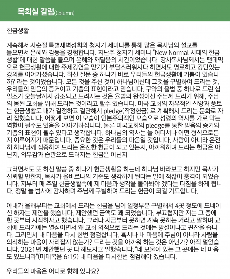 헌금 생활 페이지 정보 작성자 한미연합감리교회 조회 1,062회 작성일 21-03-09 06:47 목록 본문 헌금 생활 이전글What it means to walk in the Spirit 21.03.09 다음글You Were Created for a Purpose 21.02.28 댓글 0 댓글목록 등록된 댓글이 없습니다. 목록