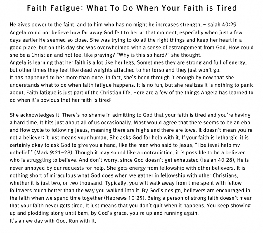 Faith Fatigue: What To Do When Your Faith Is Tired