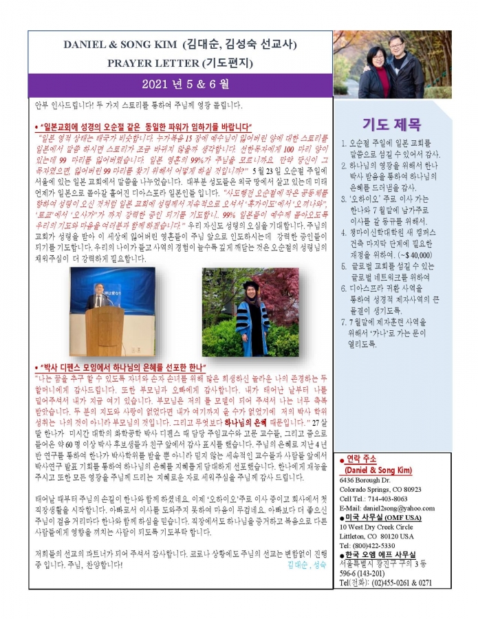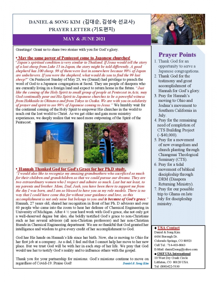 2021 태국에서 온 선교편지 5월&6월 페이지 정보 작성자 한미연합감리교회 조회 1,282회 작성일 21-05-30 06:08 목록 본문 2021 태국에서 온 선교편지 5월&6월 이전글2021 7월 임마누엘연합감리교회 온 선교편지 21.07.21 다음글2021년 4월 태국에서 온 선교편지 21.04.24 댓글 0 댓글목록 등록된 댓글이 없습니다. 목록