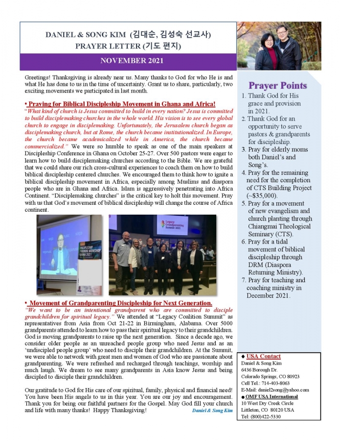 2021 11월 태국에서 온 선교편지 페이지 정보 작성자 한미연합감리교회 조회 1,393회 작성일 21-11-19 17:26 목록 본문 2021 11월 태국에서 온 선교편지 이전글2021 나바호인디언 선교편지 21.12.04 다음글2021 태국에서 온 선교편지 10월 21.10.06 댓글 0 댓글목록 등록된 댓글이 없습니다. 목록