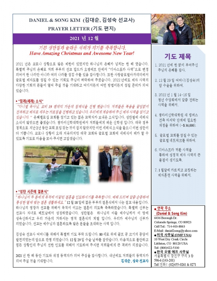 2021 12월 태국에서 온 선교편지 페이지 정보 작성자 한미연합감리교회 조회 1,398회 작성일 21-12-21 03:03 목록 본문 2021 12월 태국에서 온 선교편지 이전글2022 1월 & 2월 태국에서 온 선교편지 22.02.04 다음글2021 나바호인디언 선교편지 21.12.04 댓글 0 댓글목록 등록된 댓글이 없습니다. 목록