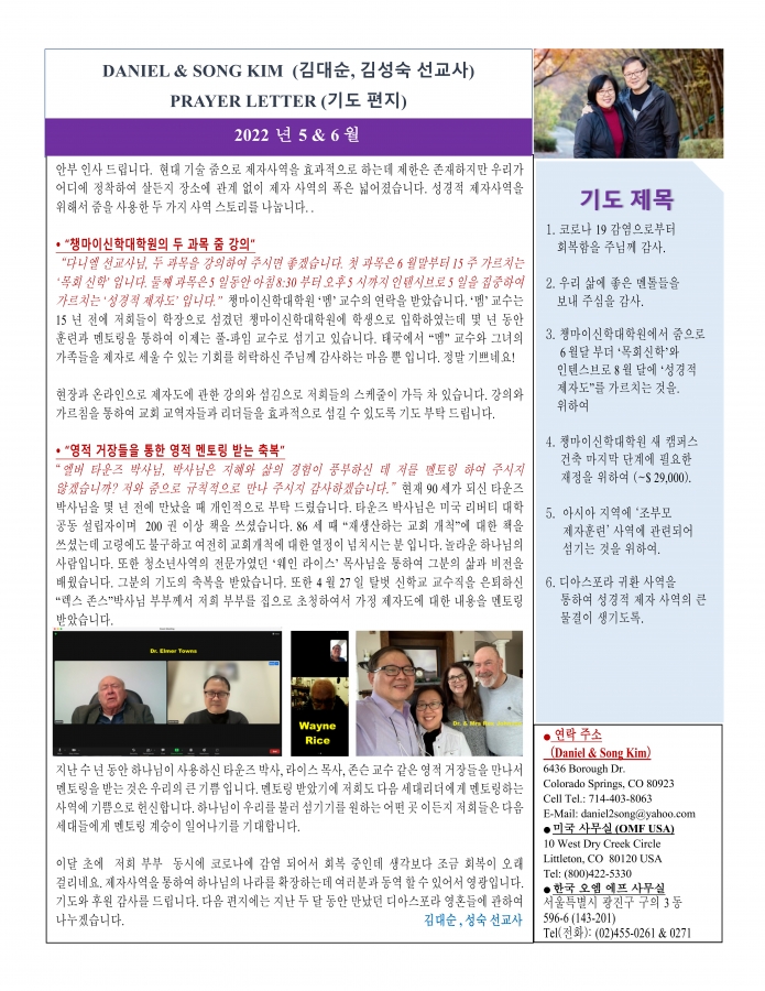 2022 5월, 6월 태국에서 온 선교편지 페이지 정보 작성자 한미연합감리교회 조회 895회 작성일 22-06-11 04:53 목록 본문 2022 5월, 6월 태국에서 온 선교편지 이전글2022 7월 태국에서 온 선교편지 22.07.08 다음글2022 4월 태국에서 온 선교편지 22.04.16 댓글 0 댓글목록 등록된 댓글이 없습니다. 목록